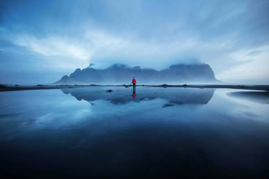 Vestrahorn is known for its dramatic, jagged peaks rising from the Atlantic Ocean. The reflections on the black sand beach at Stokksnes make it one of the best photography locations in Iceland.